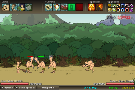• Vous connaissez le célèbre jeu Age of War 1 voici la deuxième version plus évoluée. Le but du jeu est le même : il faut réussir à envahir le camp adverse, tuer tes adversaires et traverser les âges sans que tes ennemis prennent possession de ton camp.