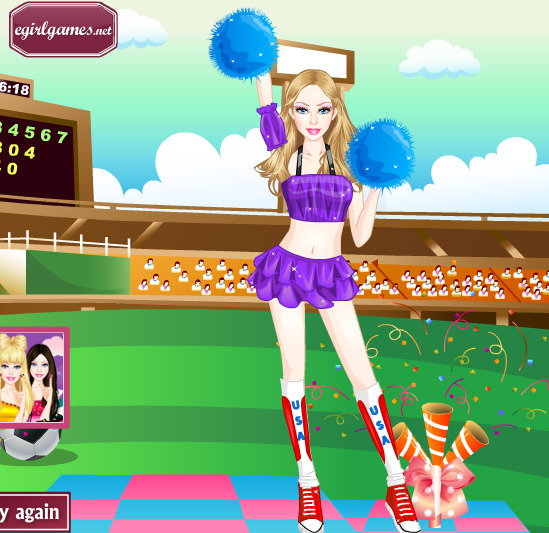 Barbie adore le sport et dans ce nouveau jeu de Barbie gratuit tu vas l’habiller pour aller supporter son équipe préférée au stade. Trouve lui la plus jolie tenue pour son rôle de pom-pom girl !