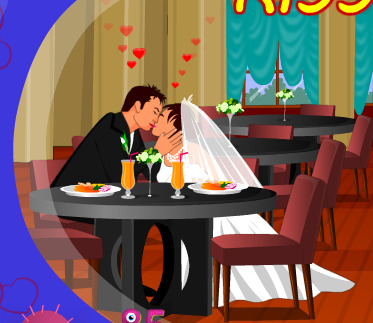 Les mariés viennent de se dire « oui » et ils sont très heureux de se retrouver dans un très beau restaurant pour manger en amoureux. Simplement, ils veulent s’embrasser dans être vu des serveurs et des autres invités. Aide-les dans cette démarche en cliquant sur ta souris au moment où personne ne regarde.