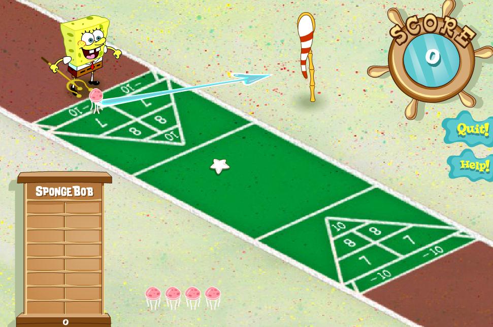 Incarne le personnage de Sandy et joue contre Bob l’éponge, vise la cible malgré le vent, et lance les méduses au bon endroit du tapis vert.