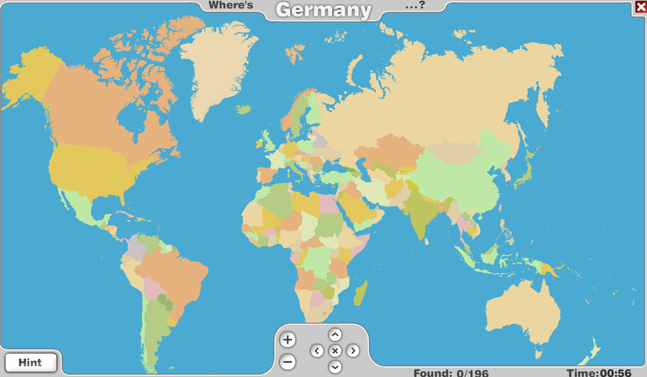 Trouve le plus vite possible le maximum de pays sur la carte. Tu peux te déplacer avec ta souris, zoomer sur la carte du monde en cliquant sur les boutons « plus » et « moins ».