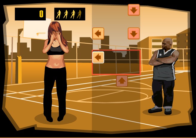 Tu dois faire danser Honey en appuyant sur les flèches de ton clavier. Presse les touches correspondantes au dessins qui défilent et qui s’allument dans le cadre rouge.