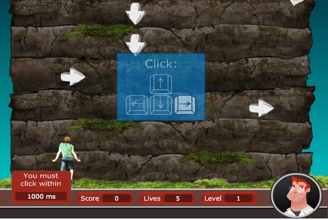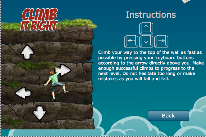 Appuie sur une des flèches lorsque celle-ci apparaît sur le mur d’escalade. Mais attention tu ne dois pas hésiter trop longtemps au risque de tomber !