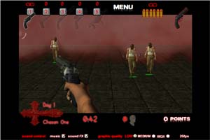 Tire sur les gens qui viennent vers toi avec une hache, attention plus le niveau augmente plus ils sont nombreux et arrivent vite, à toi d’être réactif.
