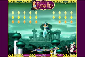 Fais bouger le tapis volant avec les flèches directionnelles gauche et droite de ton clavier pour rattraper Jasmine lorsqu’elle saute. Attention si tu n’es pas assez rapide Jasmine tombe. -