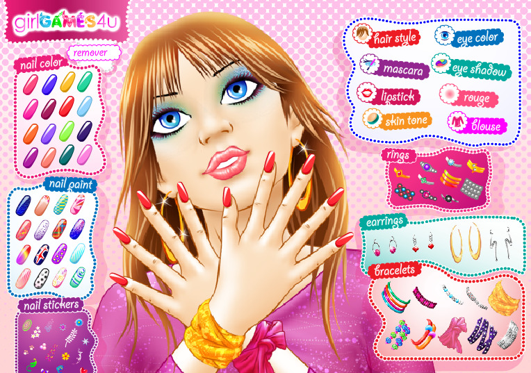 Ce jeu de maquillage gratuit en ligne est tout nouveau et vraiment très bien fait. En un coup d’oeil tu vois tous les accessoires qui sont mis à ta disposition pour faire la manucure et le maquillage de ton modèle.