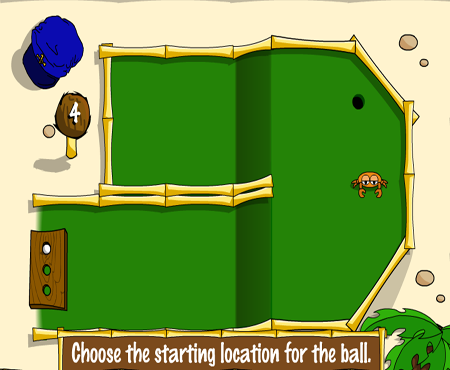 Au début du parcours clique sur un des trous pour placer la balle sur l’un des 3 placements de départ.