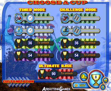 Chaque championnat renferme plusieurs courses. Tu dois au moins remporter une médaille de bronze sur chaque course pour pouvoir passer au parcours suivant.Clique sur un mode de jeu ainsi que sur un circuit pour débuter la course.