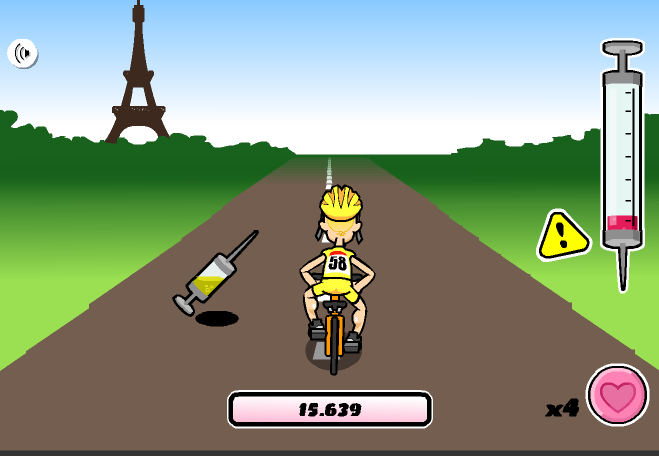 Attention, il faut que tu veilles à la dose de ta piqure. Une fois le liquide écoulé, tu ne peux plus pédaler et le jeu s’arrête.